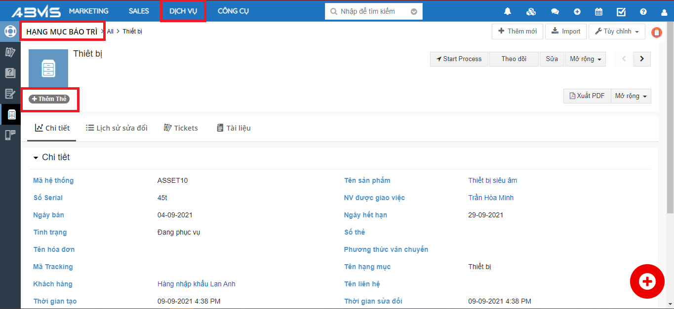 Thêm thẻ hạng mục bảo trì trên ABMS