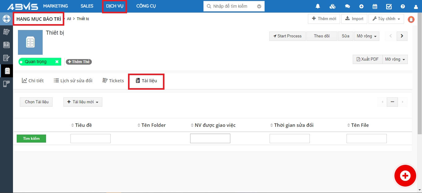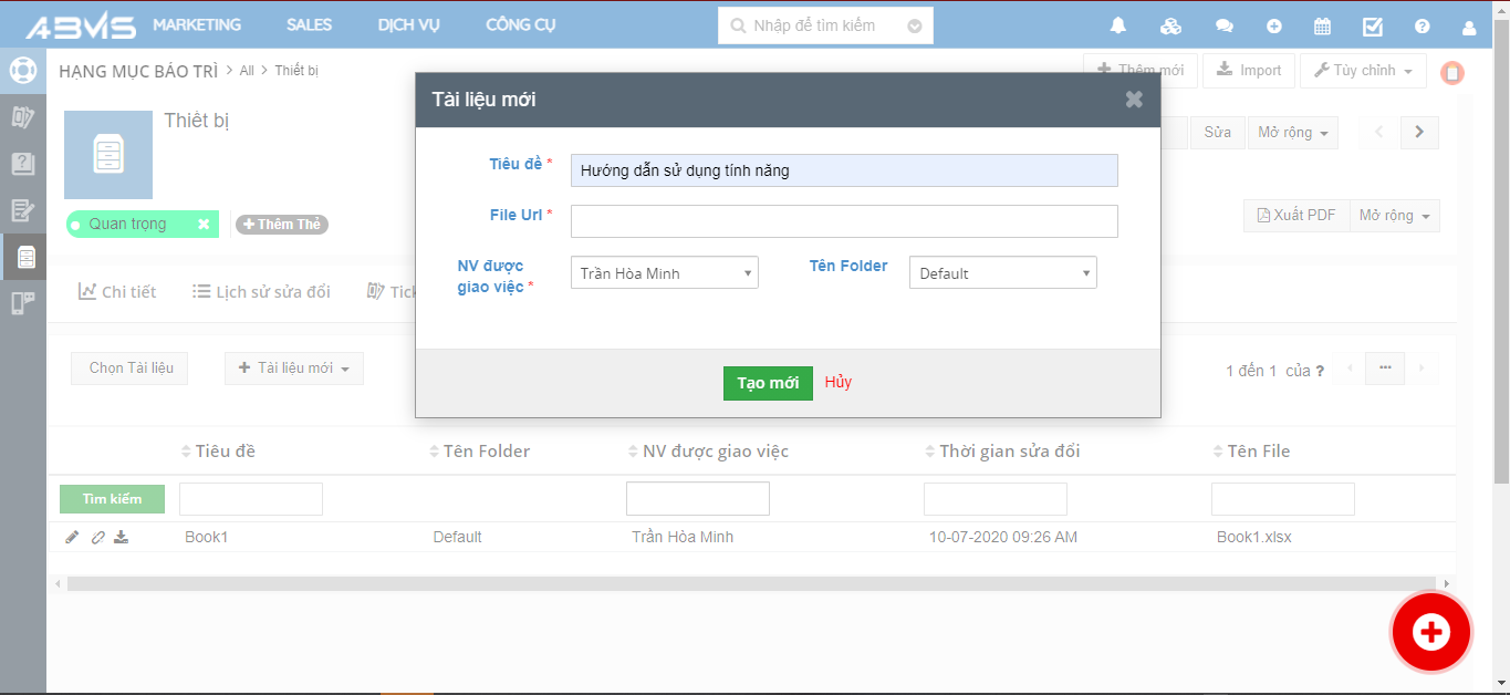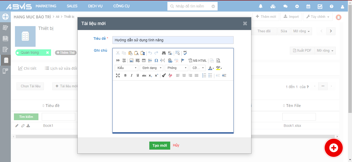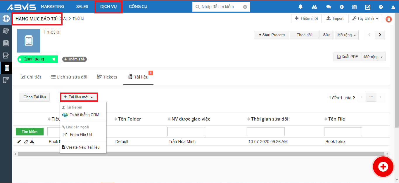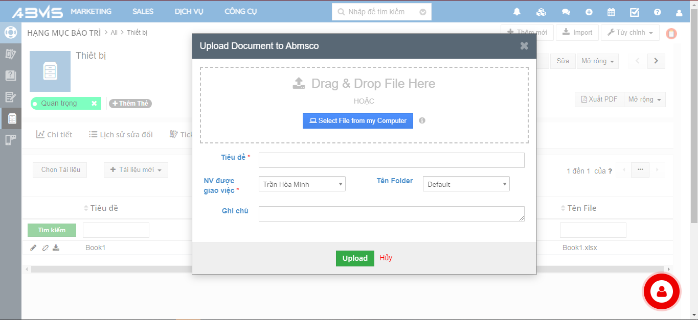 Thêm tài liệu vào Hạng mục bảo trì trên ABMS