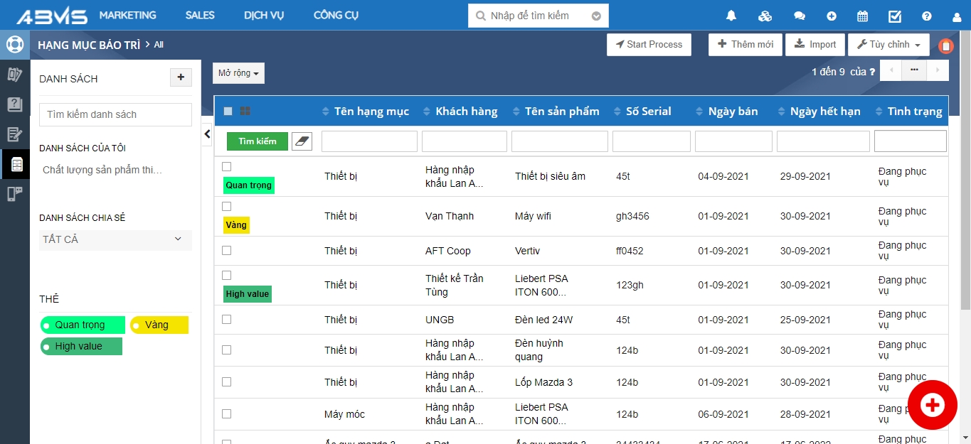 Sau khi “Thêm thẻ” thành công, các thẻ này sẽ hiển thị bên ngoài giao diện của Hạng mục bảo tri giúp bạn có thể dễ dàng theo dõi.