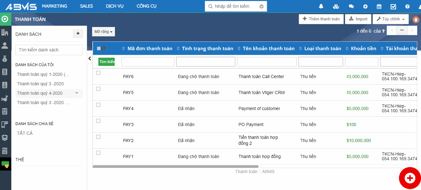 Cách tạo mới Danh sách lọc và Thêm mới thanh toán vui lòng xem lại tại đây: