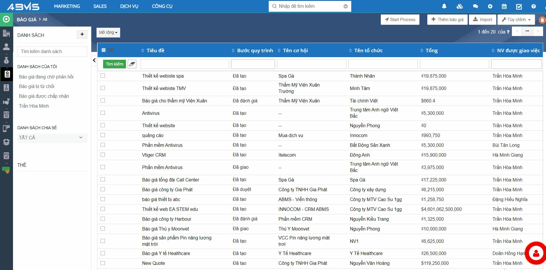 Xuất – Nhập dữ liệu trên module Báo giá