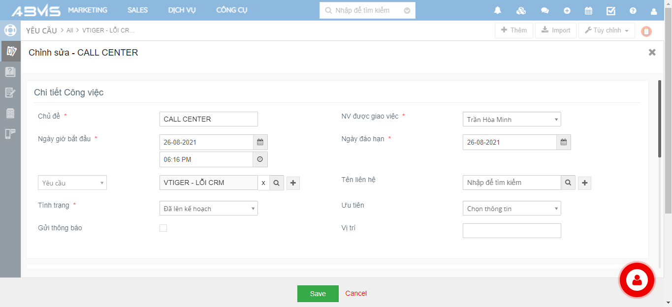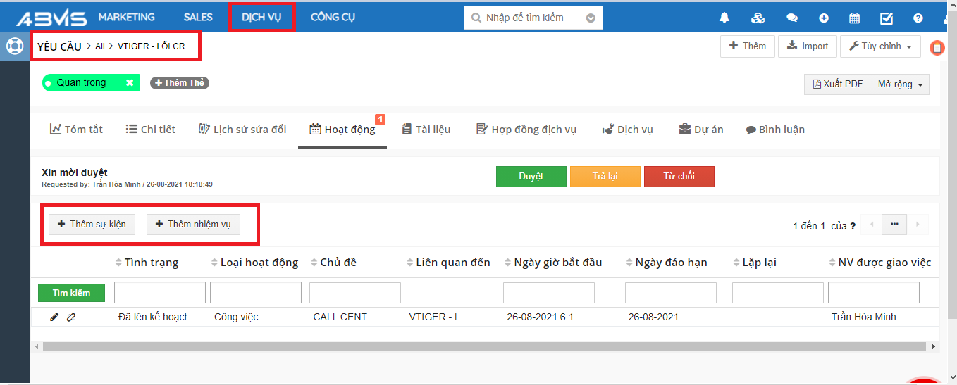 Hướng dẫn thêm sự kiện/nhiệm vụ từ yêu cầu trên ABMS