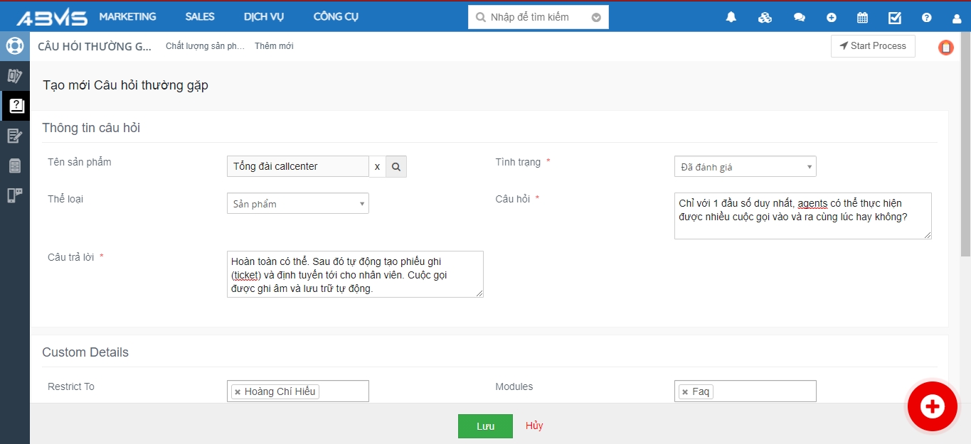 Sửa chữa các FAQ: chức năng này cho phép bạn cập nhật các câu hỏi theo thời gian khi phát sinh các vấn đề mới trong quá trình chăm sóc khách hàng.