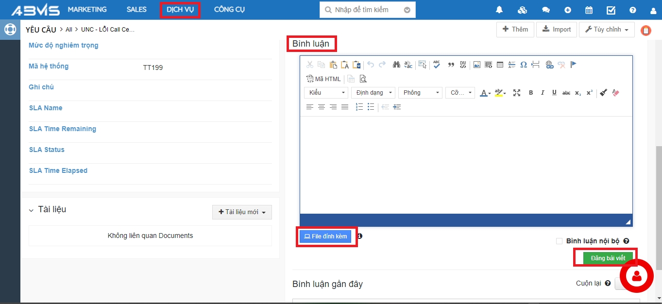 Trong quá trình xử lý yêu cầu chúng ta có thể phát sinh những vấn đề, lưu ý cần đánh dấu lại. Với tính năng này bạn có thế ghi chú lại những thông tin cần thiết trong quá trình liên hệ khách hàng.
