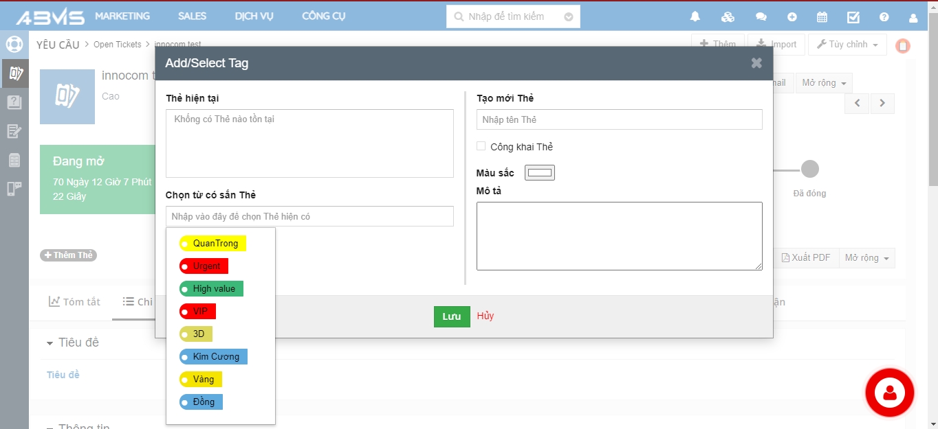 Ticket (phiếu yêu cầu hỗ trợ) là một chức năng giúp doanh nghiệp quản lý, theo dõi để có thể hỗ trợ nhanh các vấn đề hoặc yêu cầu dịch vụ của khách hàng. Vậy chúng ta sẽ phân loại và gắn thẻ yêu cầu trên ABMS như thế nào?