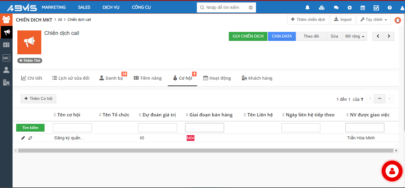 Sau khi tạo chiến dịch thành công, bạn có thể tạo các cơ hội trong chiến dịch đó. Chọn cơ hội => Thêm cơ hội mới