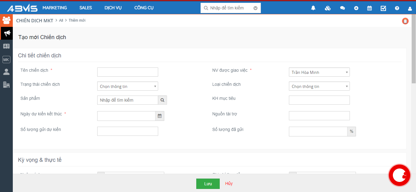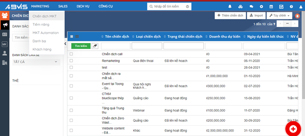Tạo chiến dịch trên phần mềm ABMS
