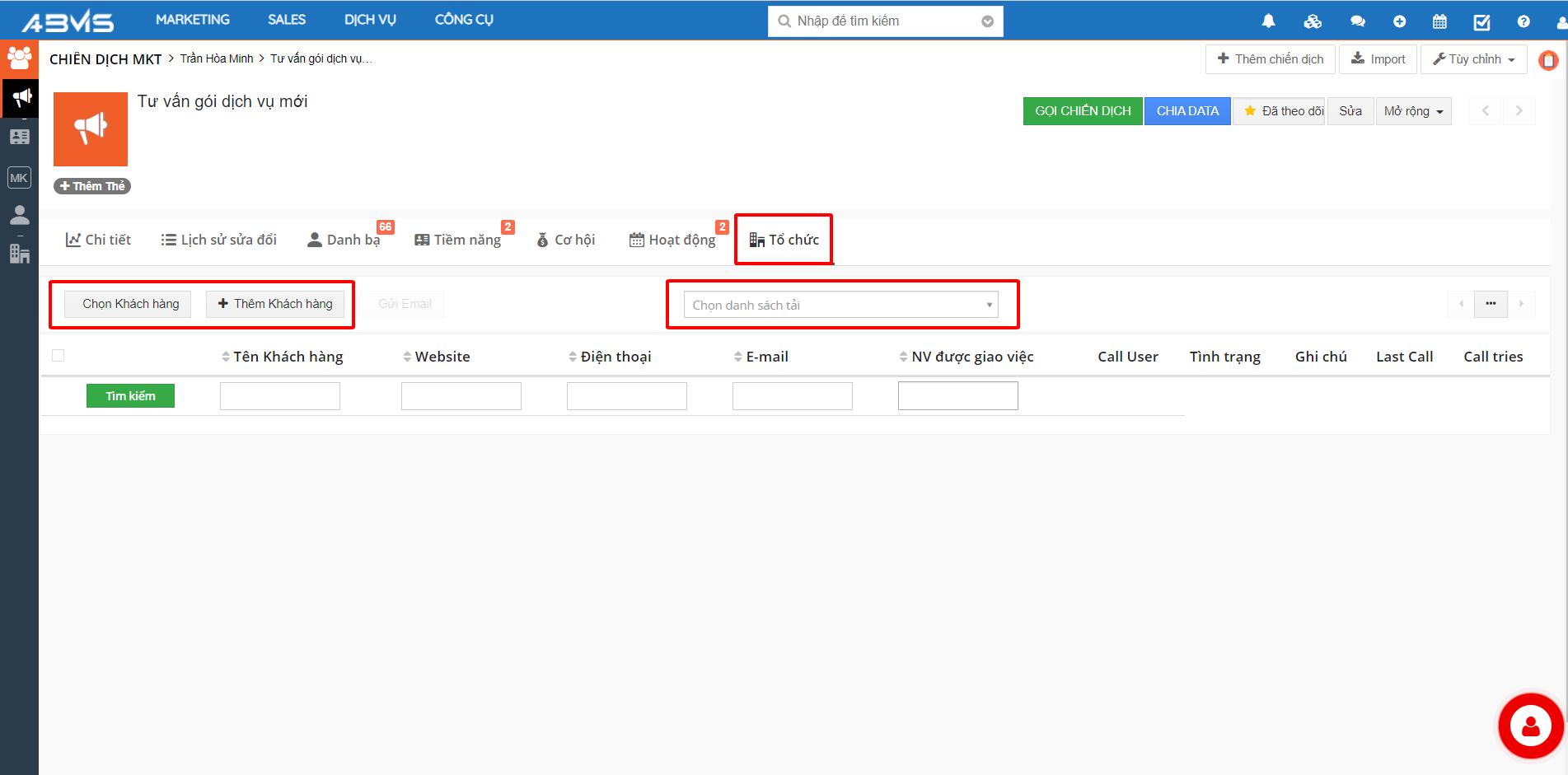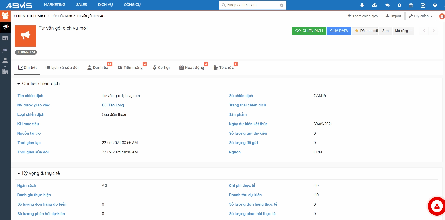 Thêm Tiềm năng – Khách hàng – Cơ hội trên Chiến dịch MKT