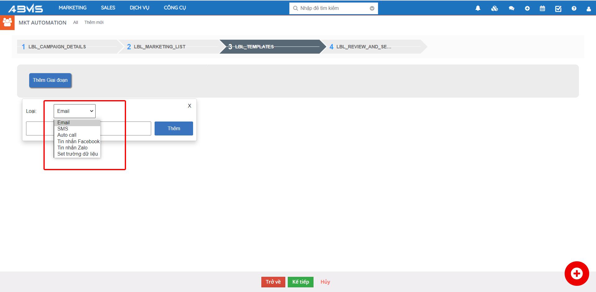 Bước 3: Lựa chọn loại chiến dịch Marketing