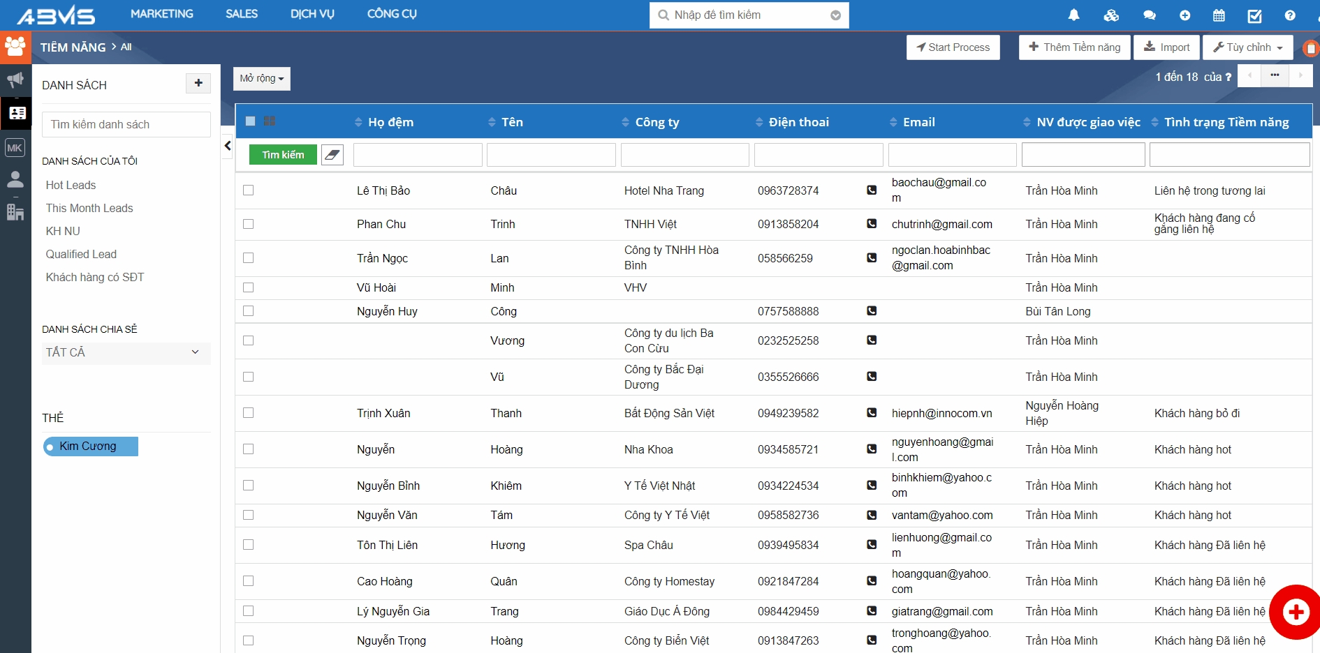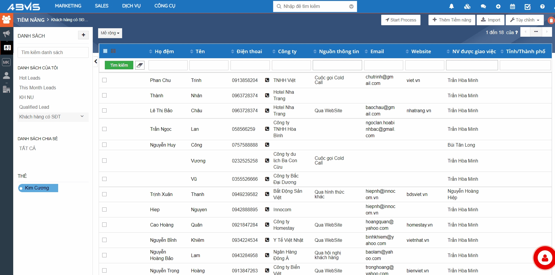 Tạo Danh sách lọc, Thêm mới và Tìm bản sao Khách hàng Tiềm năng trên ABMS