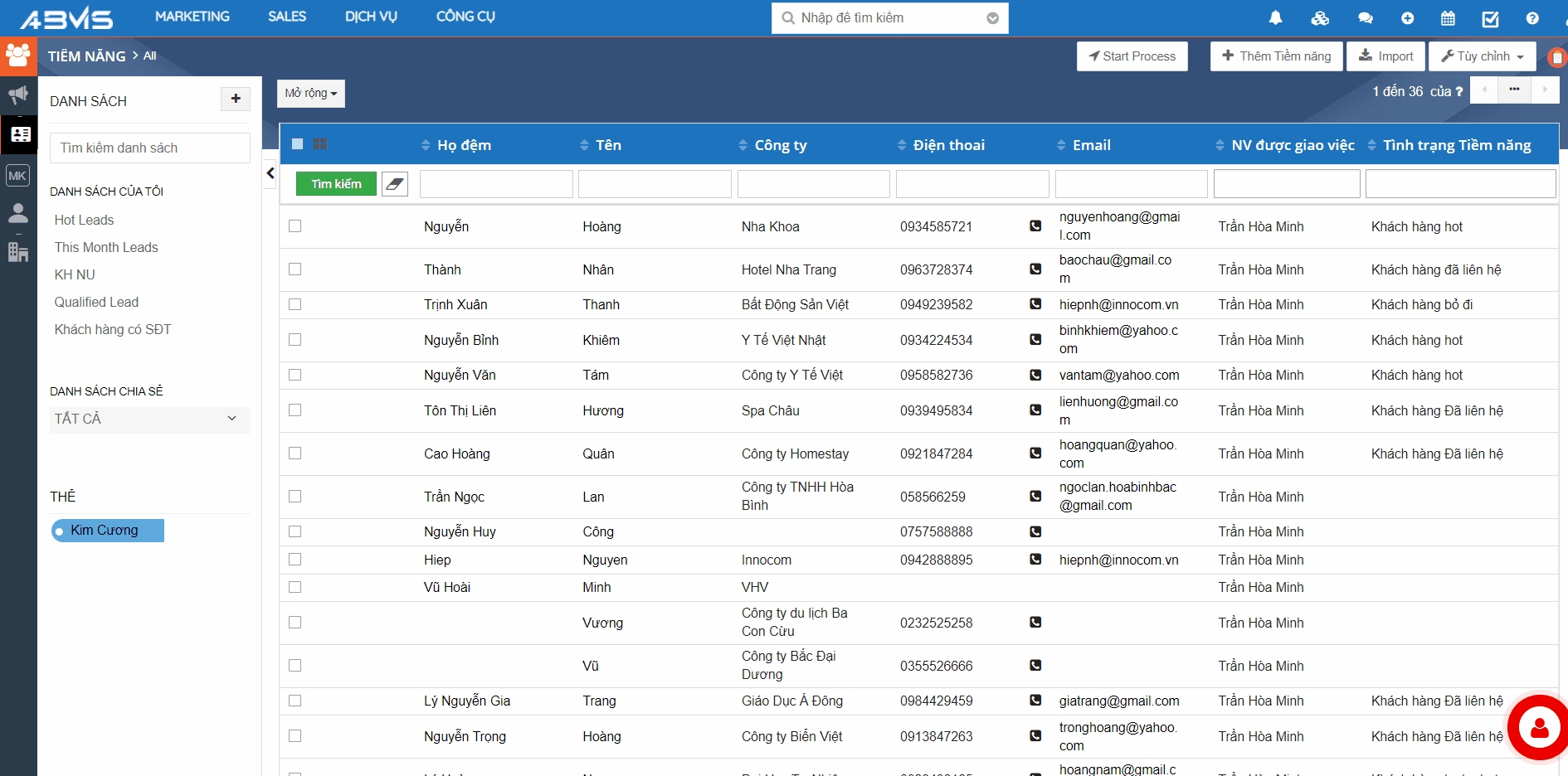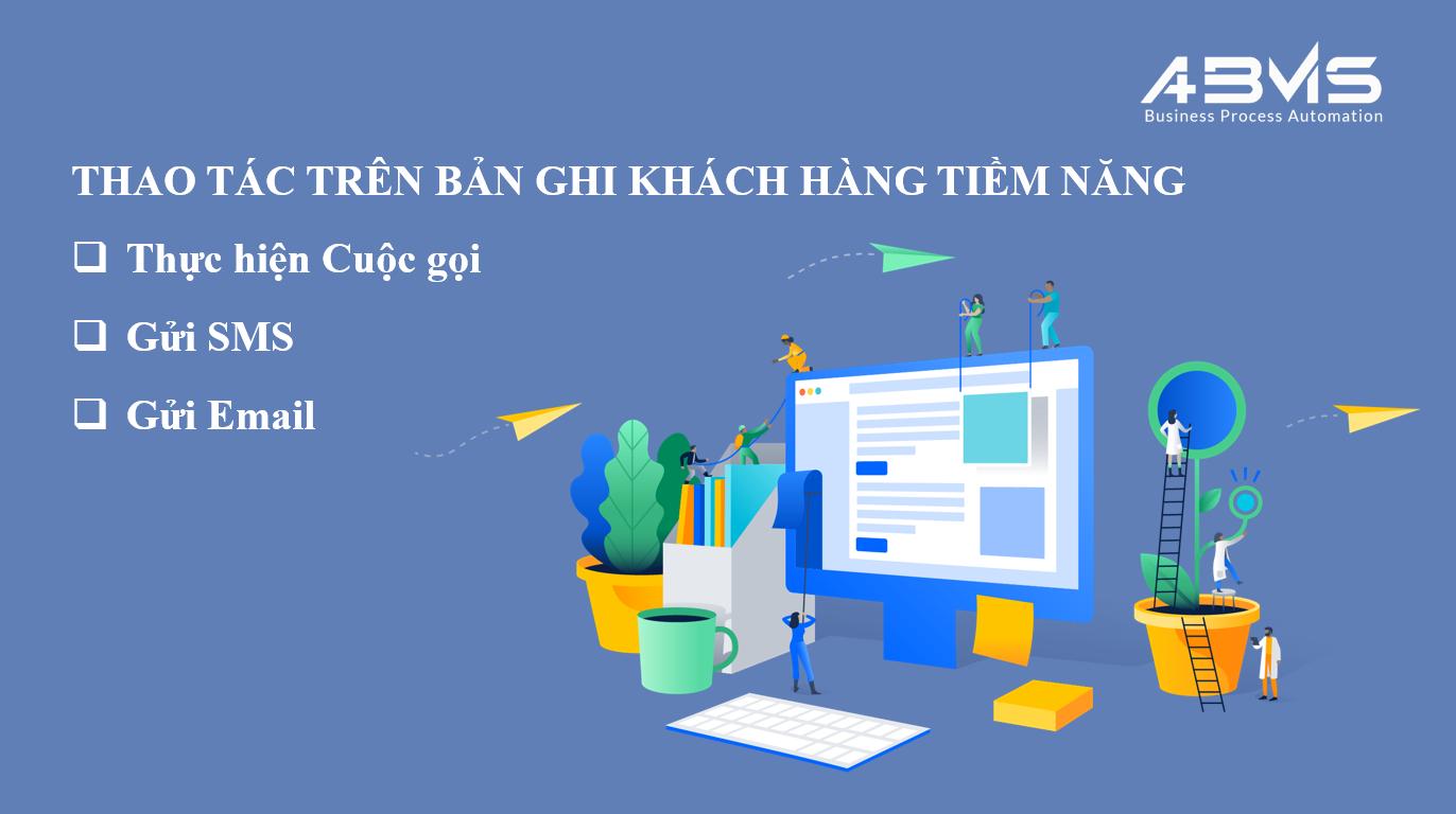 Thực hiện Cuộc gọi, Gửi SMS và Email trên bản ghi Khách hàng Tiềm năng