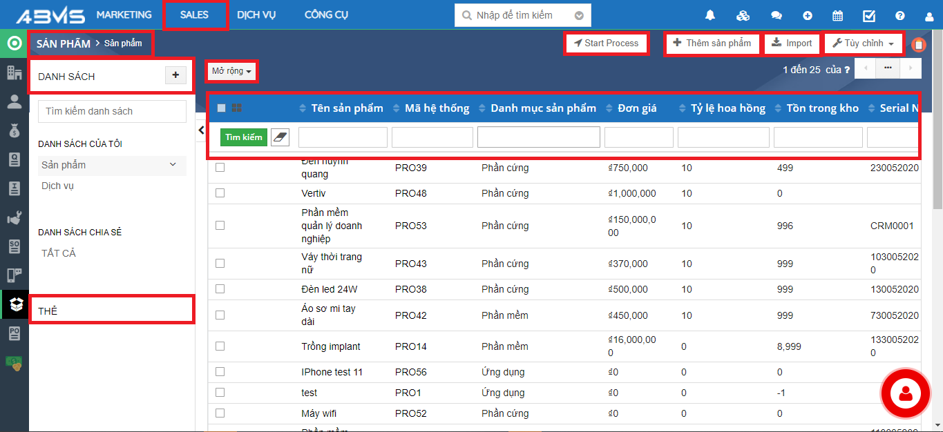 Bài viết này sẽ hướng dẫn các thao tác sử dụng với Module Sale , chức năng Sản phẩm trên hệ thống ABMS.