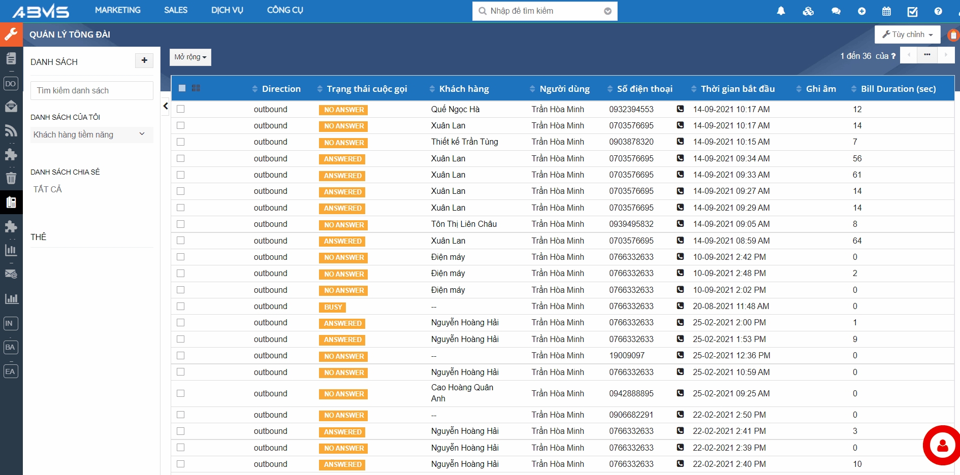 Báo cáo cuộc gọi CDR, nghe ghi âm trên module Quản lý tổng đài