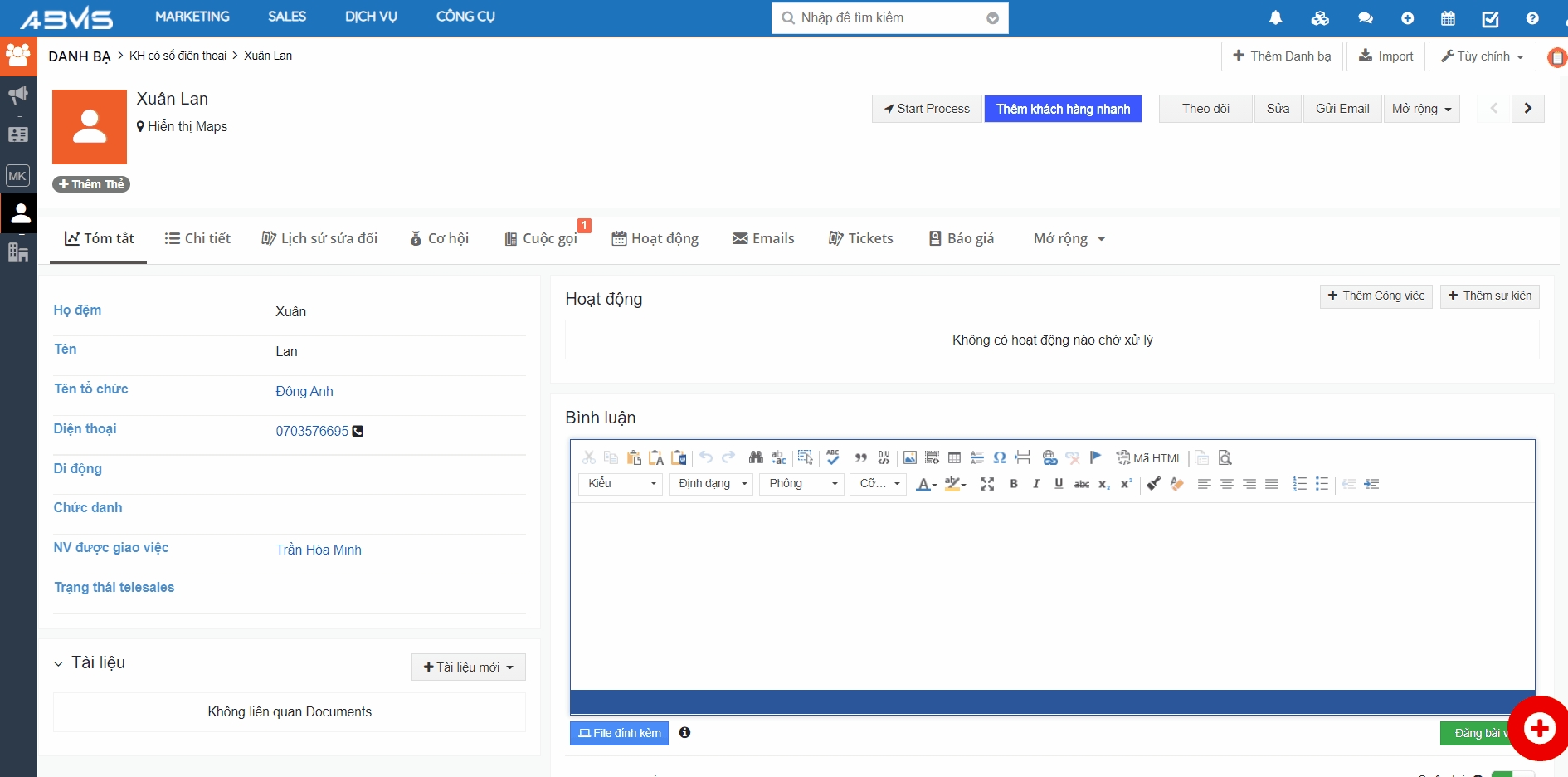 Sau khi nghe máy và trao đổi với khách hàng, bạn có thể thuận tiện ghi chú lại nội dung cuộc gọi và bấm “Cập nhật” để lưu lại thông tin.