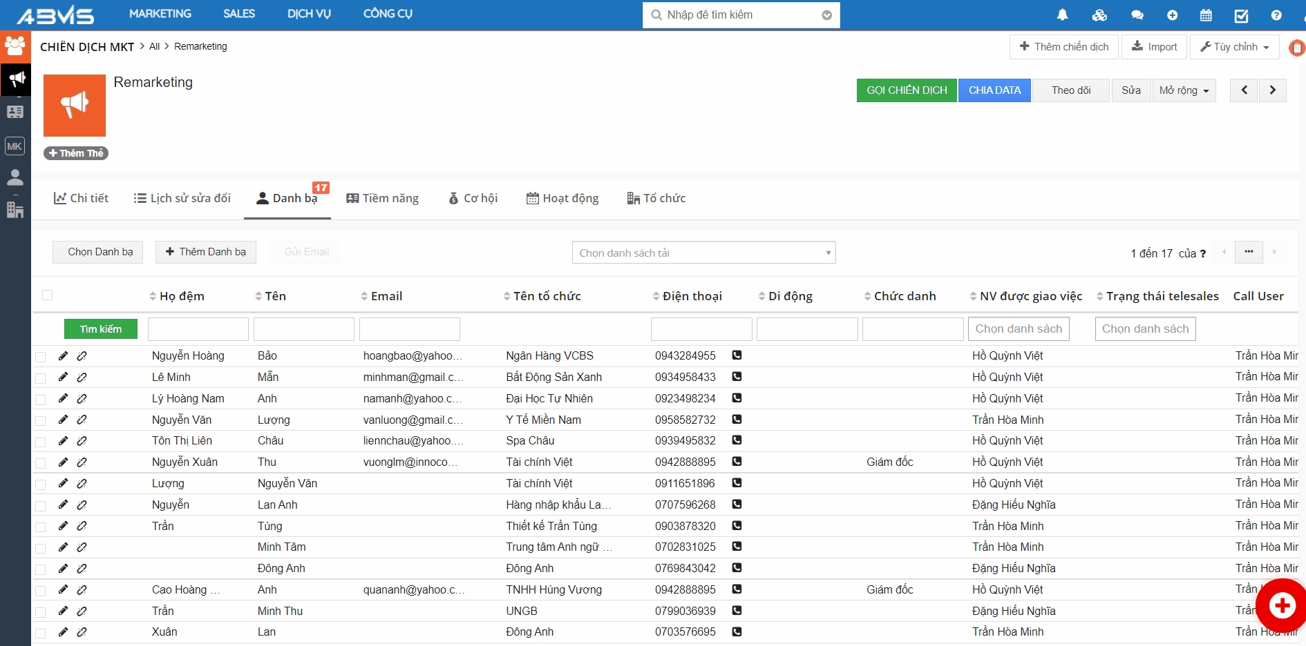 Gọi theo chiến dịch trong module Chiến dịch MKT