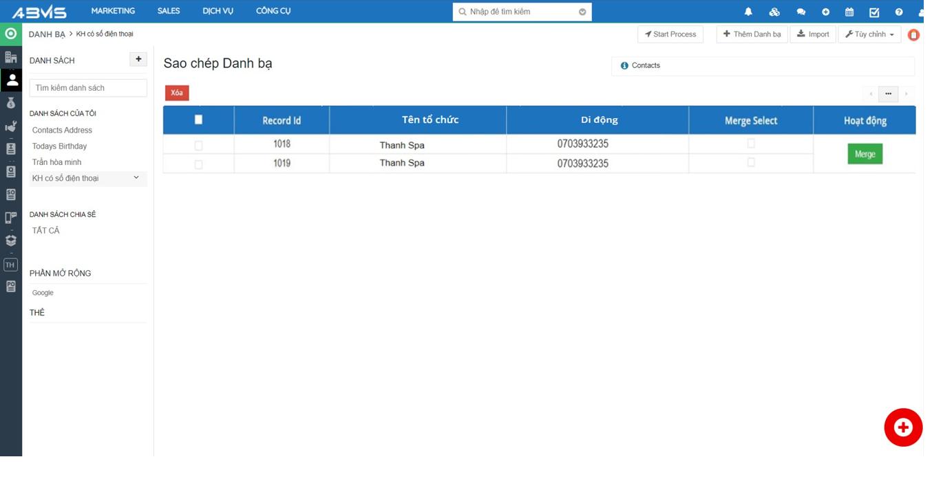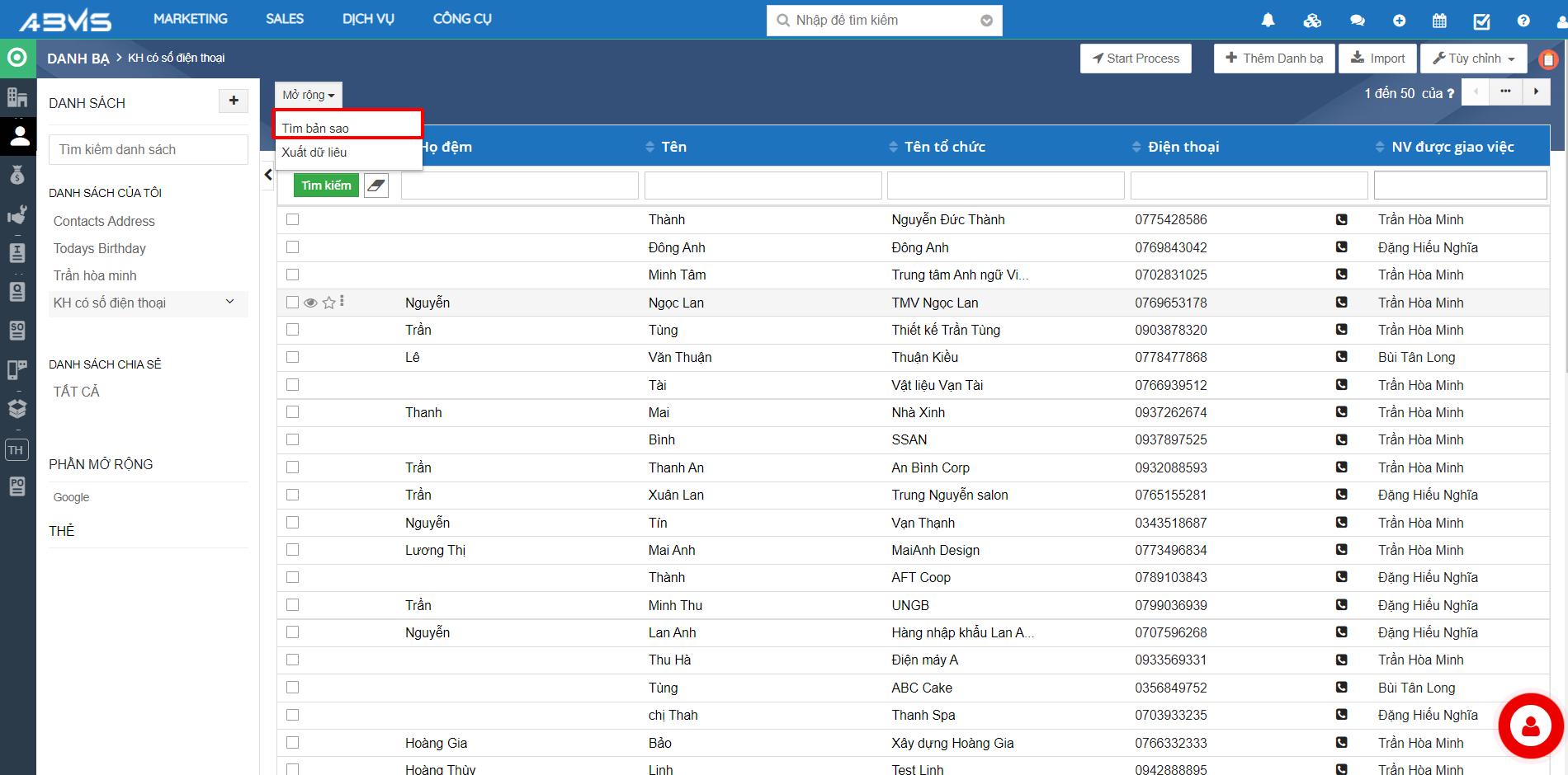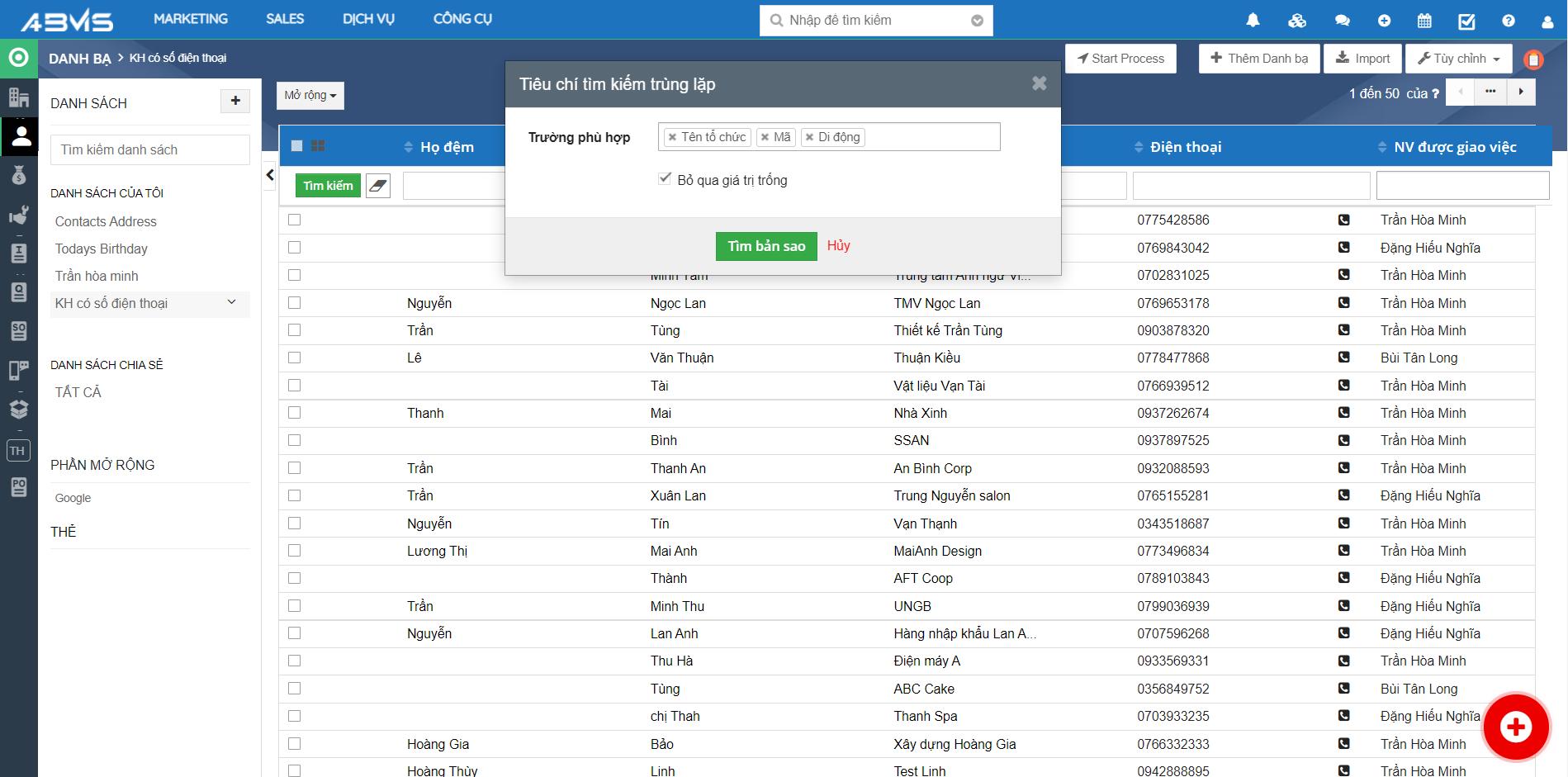 Tạo mới Danh sách danh bạ – Tìm bản sao trên ABMS