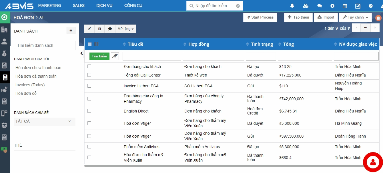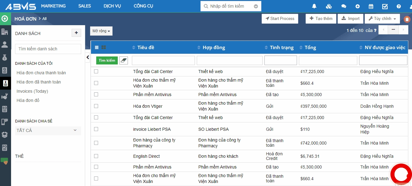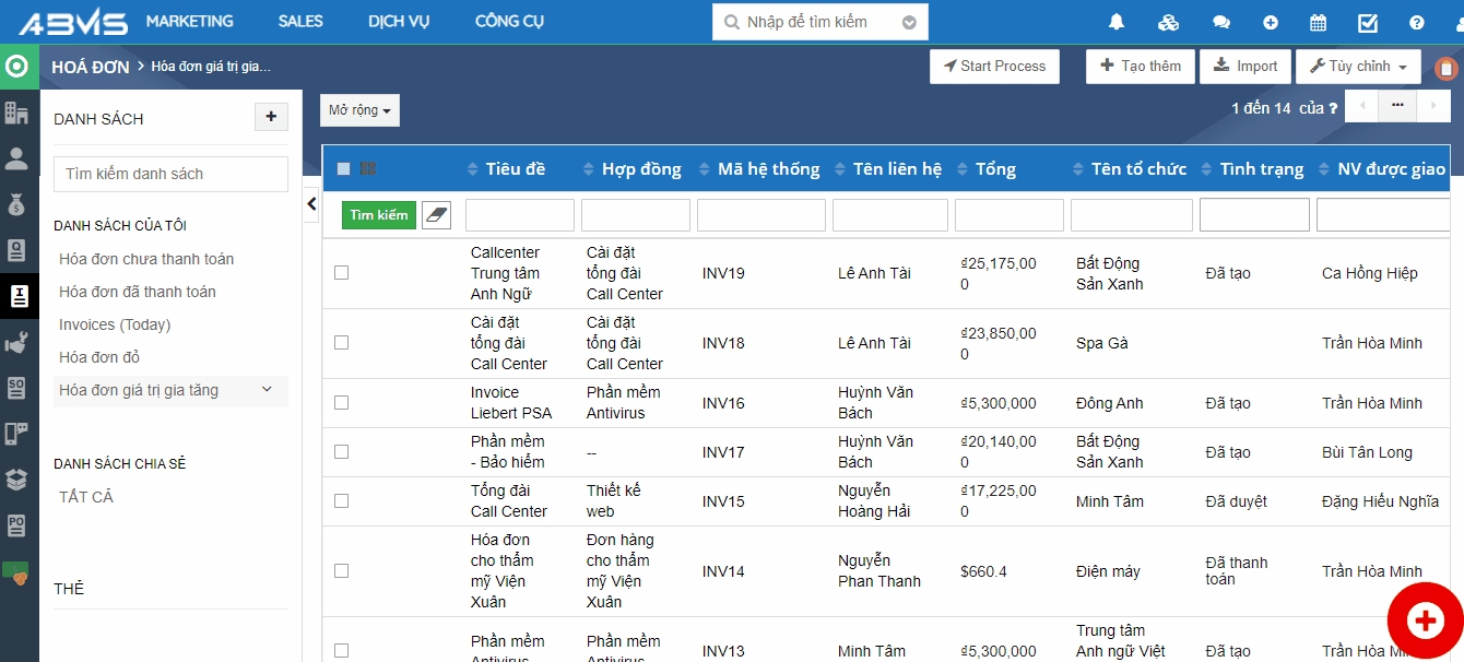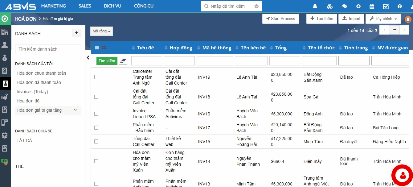 Hướng dẫn các thao tác quản lý và theo dõi Hóa đơn trên ABMS