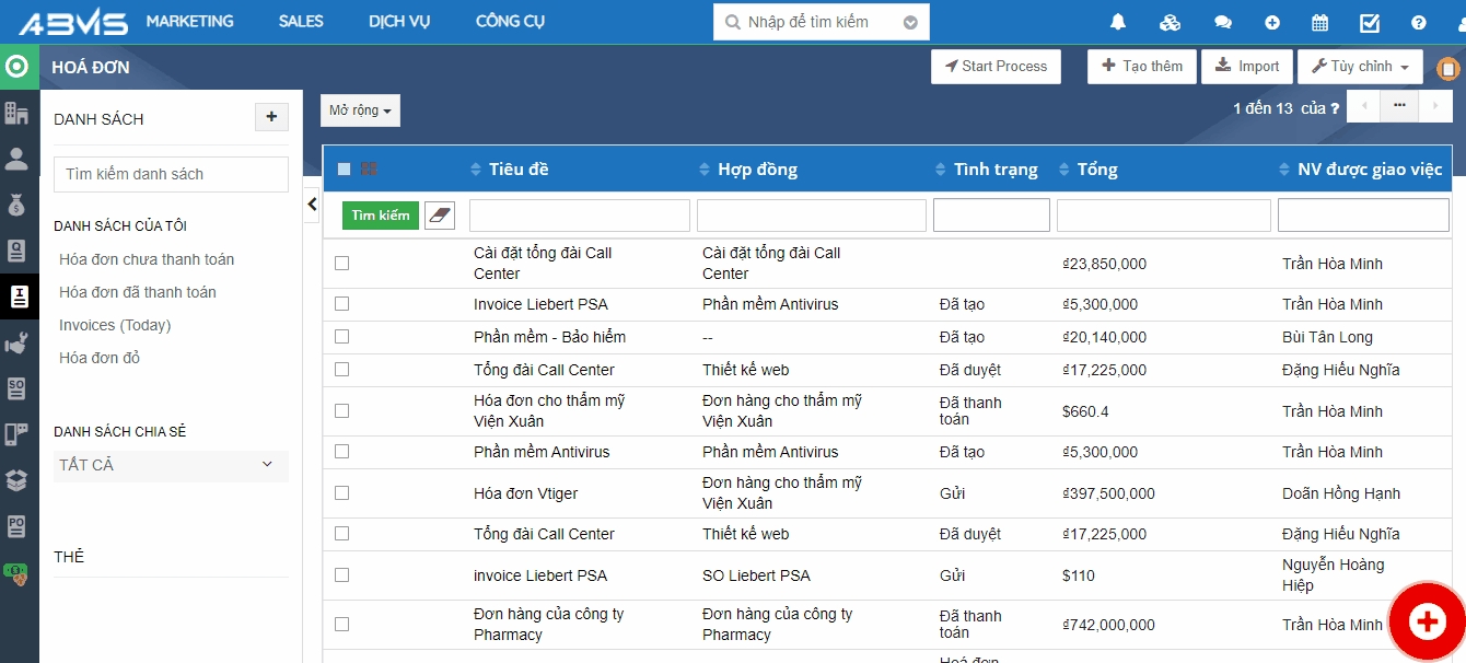 Tạo mới danh sách lọc và hóa đơn trên ABMS