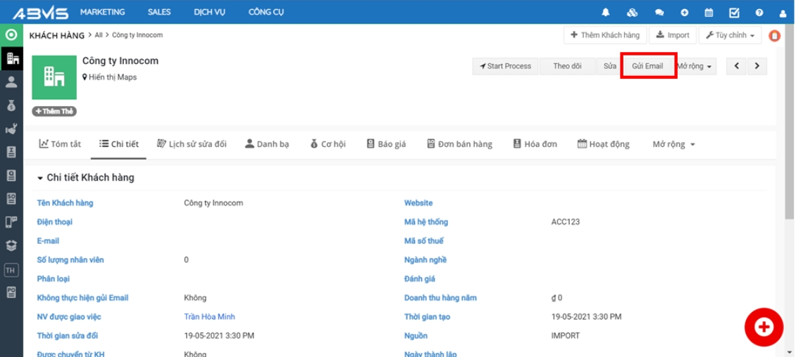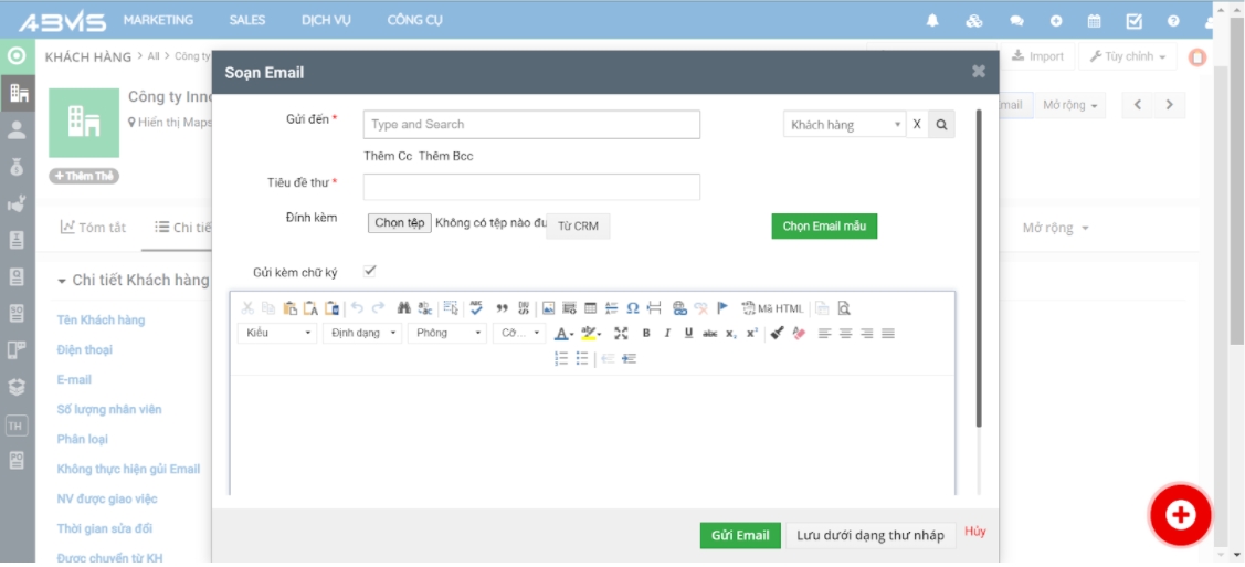 Gửi email trực tiếp từ bản ghi Khách hàng trên ABMS