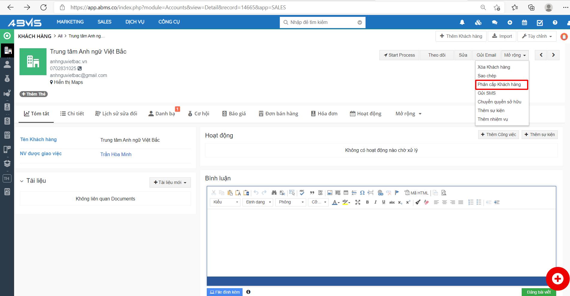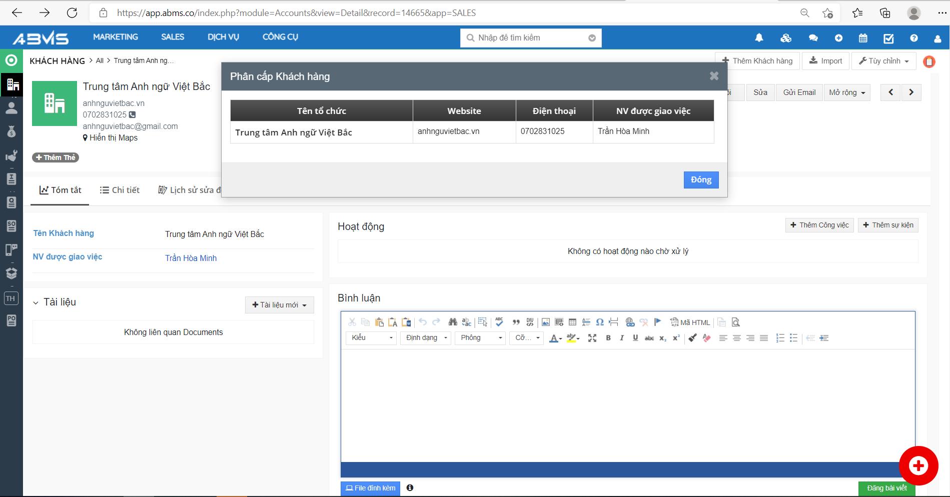 PreviousGửi email trực tiếp từ bản ghi Khách hàng trên ABMSNextThêm Sự kiện & Nhiệm vụ cho từng bản ghi Khách hàng trên ABMS