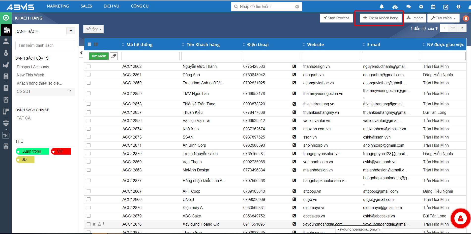 Thêm mới và Theo dõi khách hàng trên ABMS