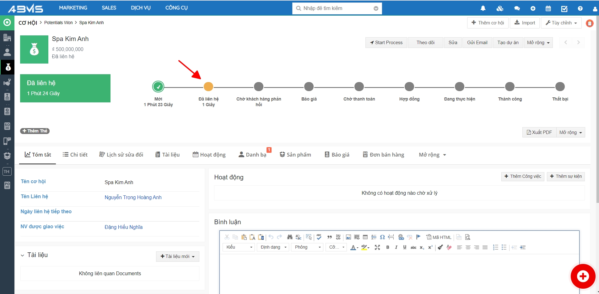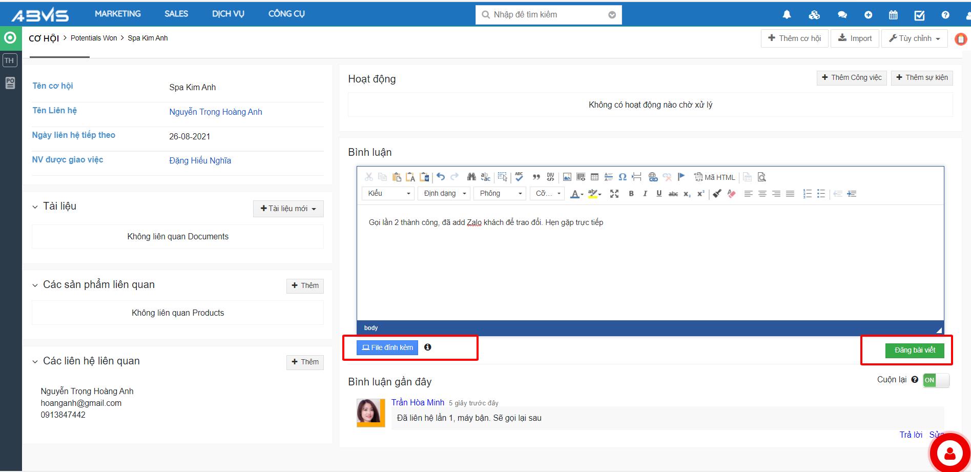 Trong quá trình liên hệ với khách hàng, người phụ trách cần cập nhật bổ sung, hoặc thay đổi một số thông tin trên Cơ hội này. ABMS cung cấp linh hoạt các tính năng chỉnh sửa cho người sử dụng.
