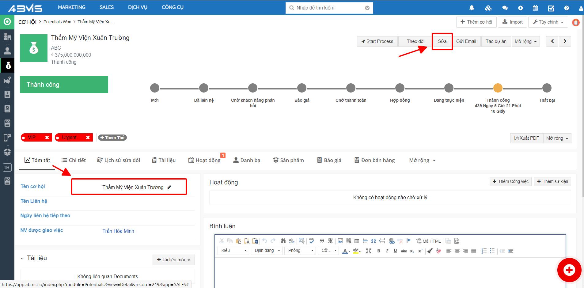 Các cách chỉnh sửa cơ hội trên ABMS