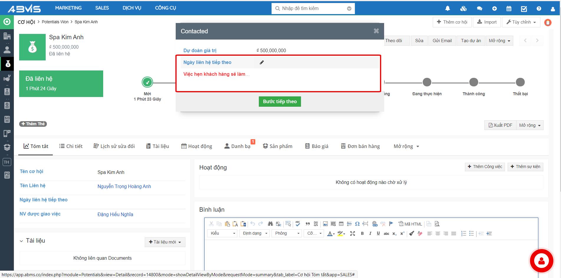 Chỉnh sửa và Theo dõi Cơ hội trên ABMS