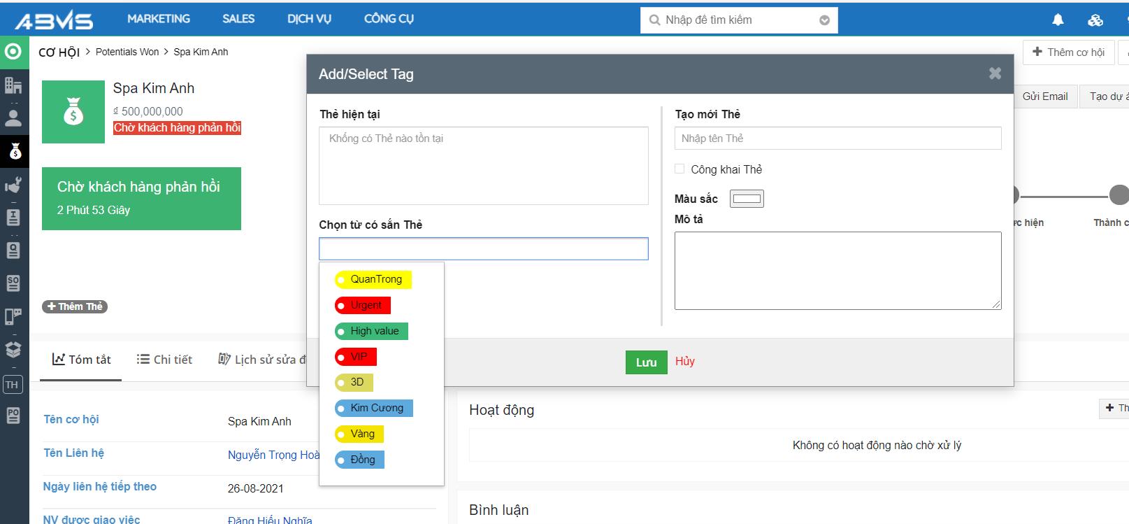 Tính năng Gắn thẻ và Bình luận cho từng Cơ hội
