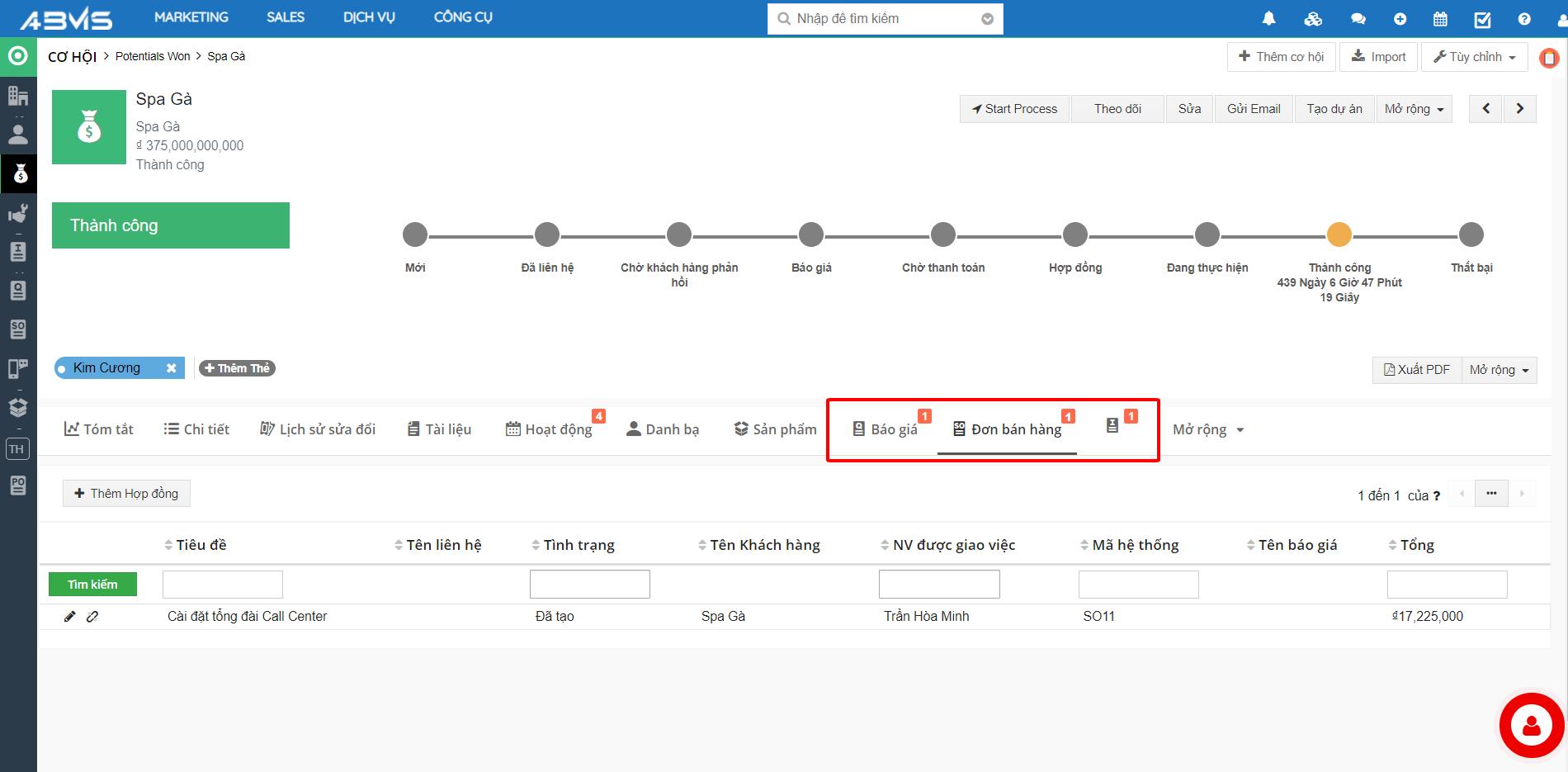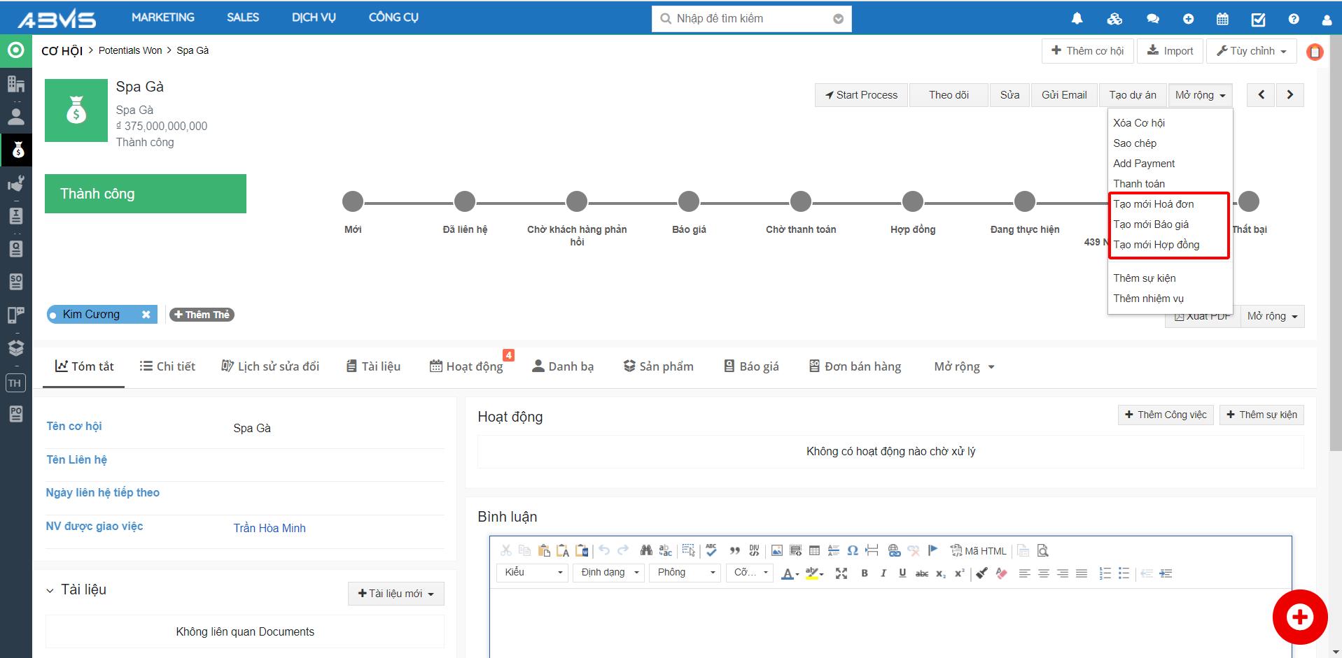 Chuyển đổi Cơ hội sang Hóa đơn, Báo giá, Hợp đồng nhanh chóng trên ABMS