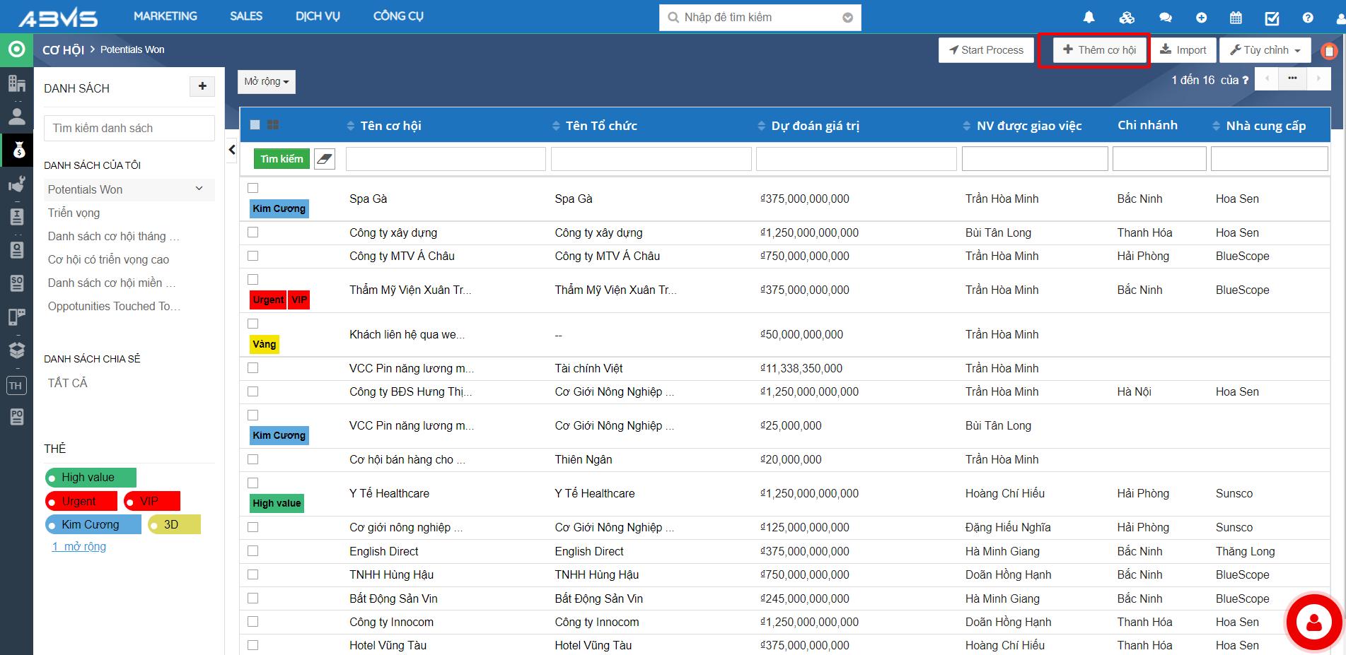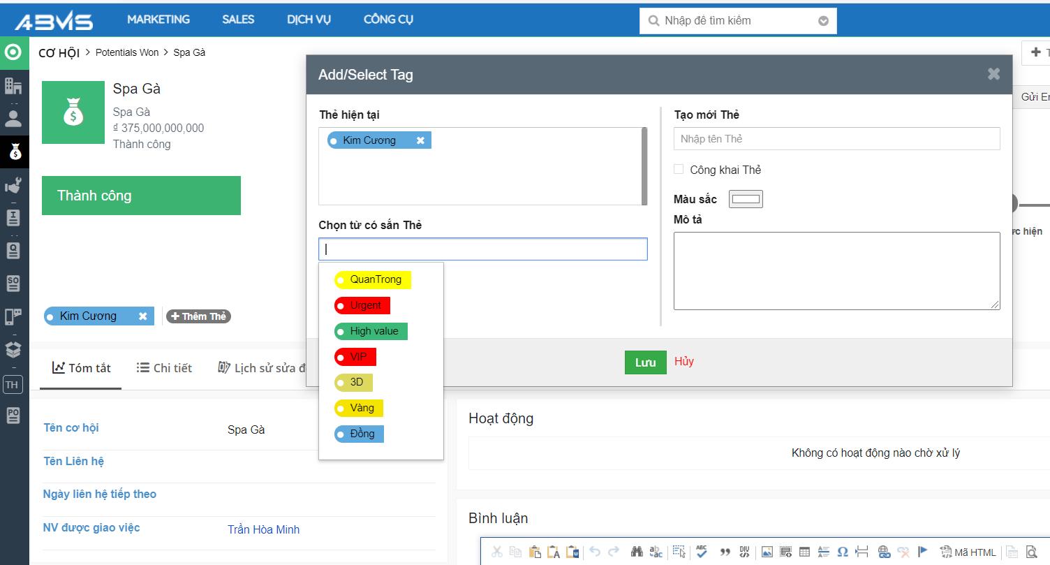 Tùy theo tiềm năng của từng Cơ hội, nhân viên phụ trách cũng có thể linh hoạt gắn thẻ phù hợp.