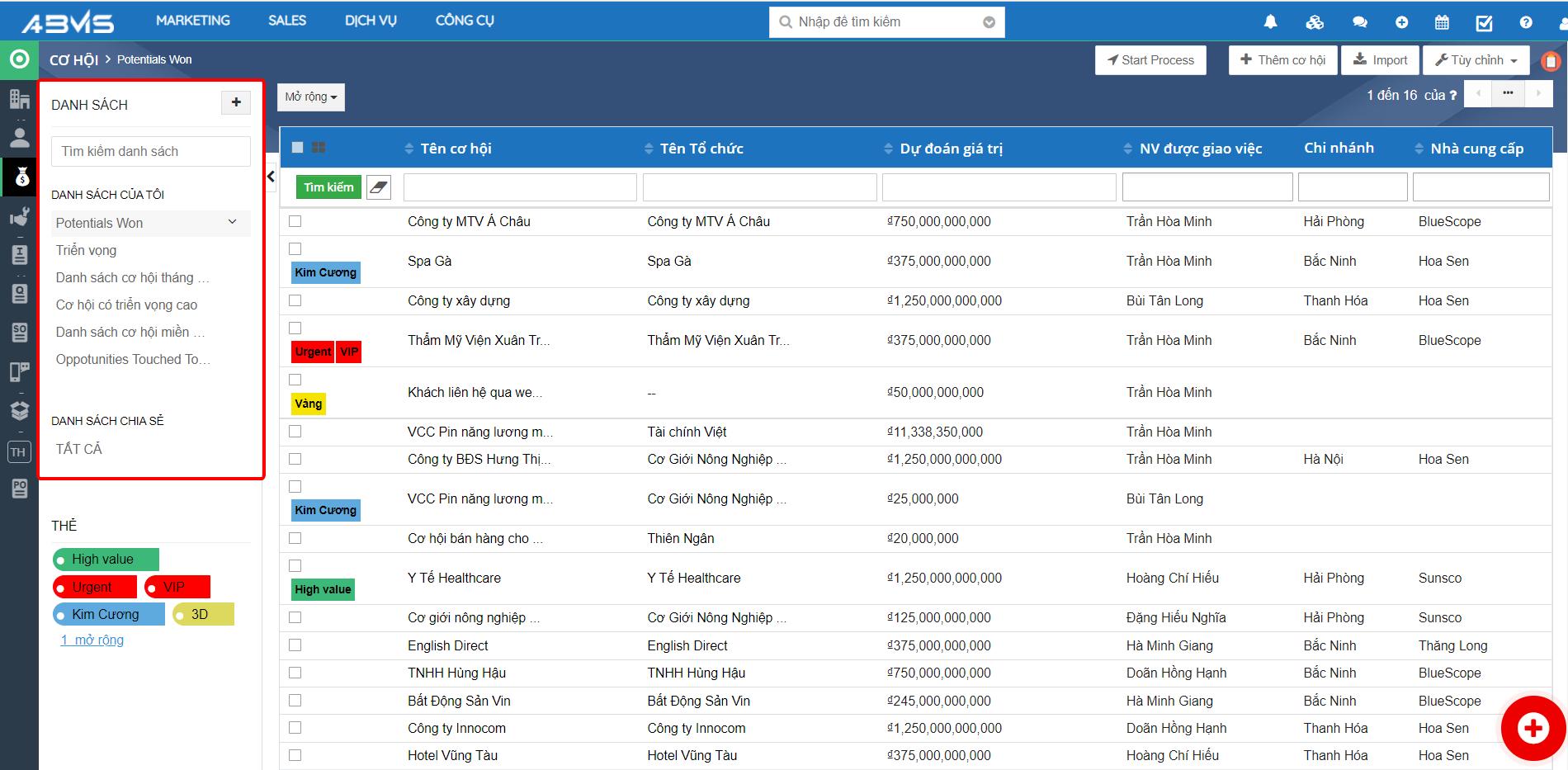 Với việc có thể xem các cơ hội theo từng danh sách, ABMS mang đến cho doanh nghiệp một cái nhìn từ tổng quan đến chi tiết nhất.